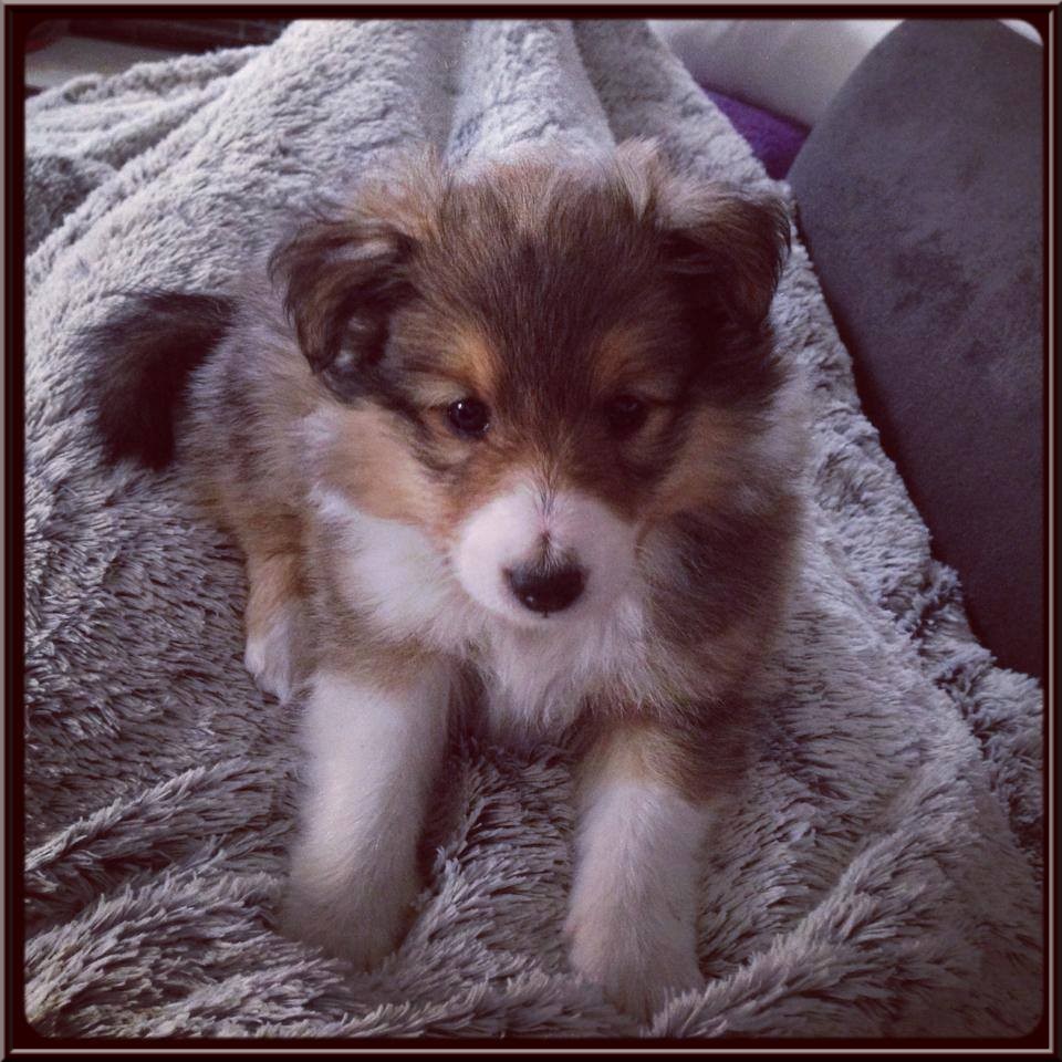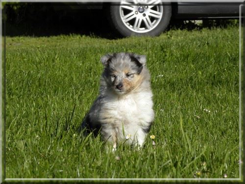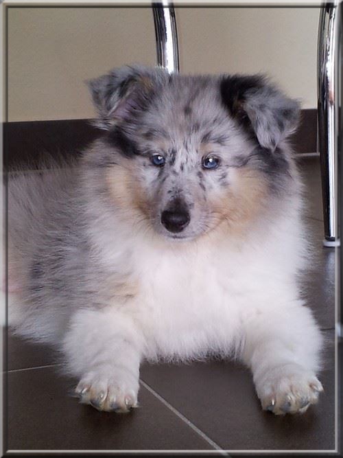 Les parents sont Hope et Happy, mâle bleu merle.